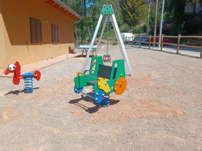 Instal·lats un gronxador i dos balancins de motlles per als més menuts, juntament a quatre aparells biosaludables per als més esportistes al pati de l’associació.